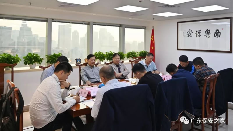 2019年11月14日下午,貴州省公安廳治安總隊二處處長楊春暉同志一行6人到我會考察交流,廣東省公安廳原副巡視員、省保安協會副會長黎小群同志主持召開座談會,省公安廳基層指導處處長謝榮旭,協會副秘書長董宏飛、關揚榮等同志參加座談。